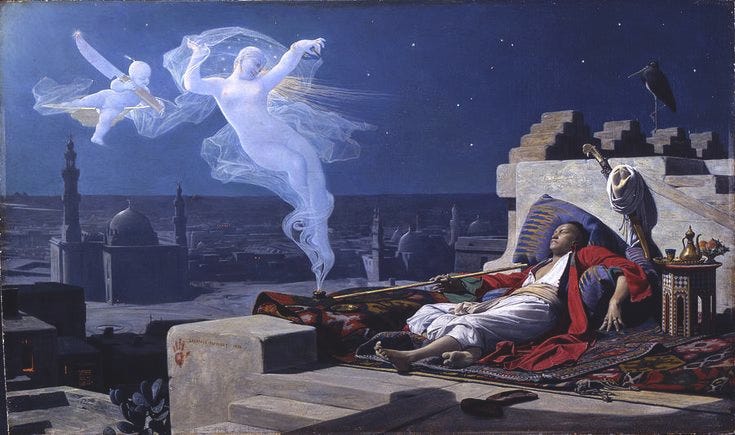 كنتُ ممددًا إلى جانب نهرٍ رقراق، تتراقص عليه أشعة نور تخرج من وادٍ عجيب. نورٌ يخطف البصر، لا يجرؤ أحد على التحديق فيه، خشية أن يفقد بصره إلى الأبد.