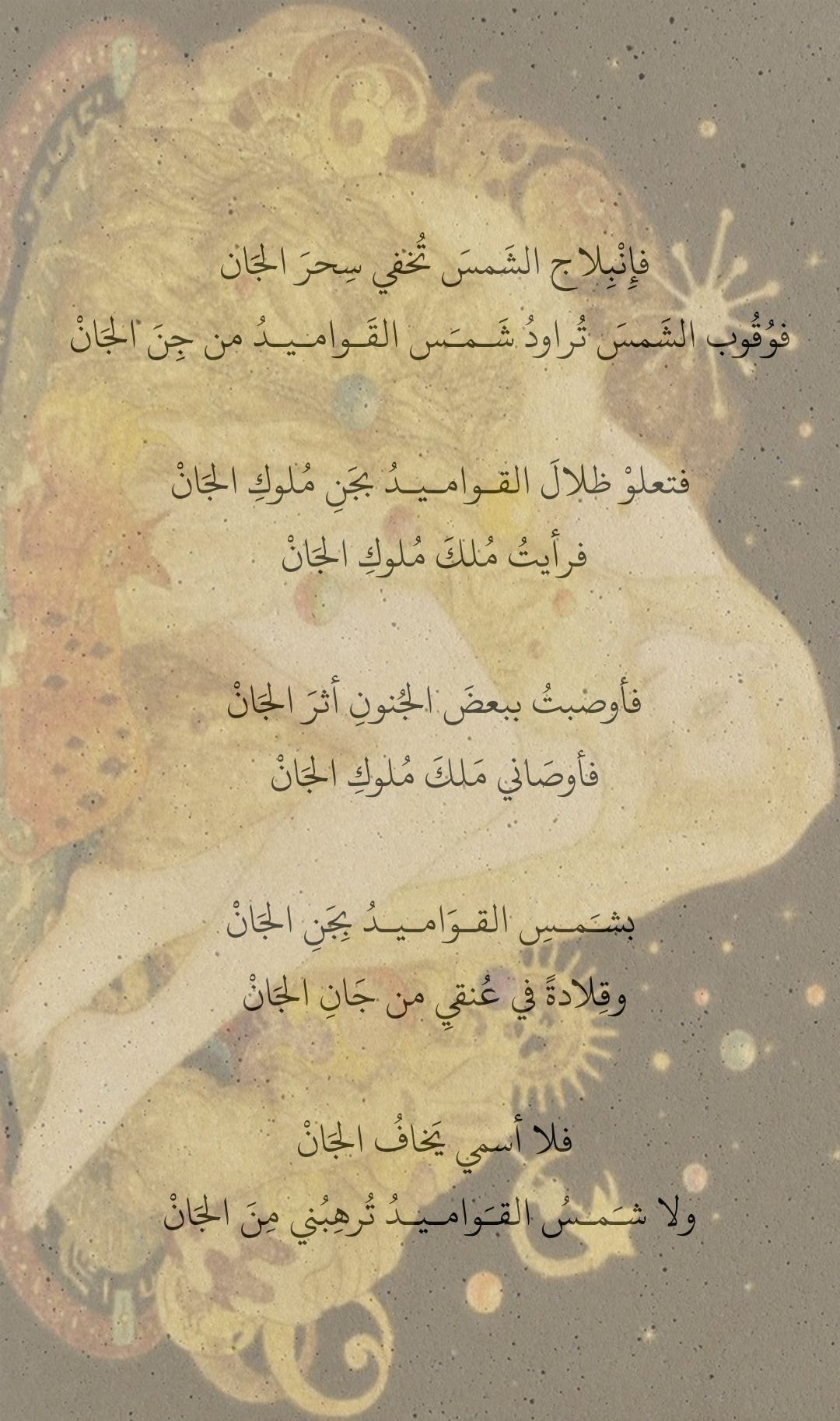 قَصيدةً دَعجَاءَ الجَانْ { part 1 }أَوْسSep 17, 2025105Shareقَصيدةً سَطرتُها بعِبقَ الروح تحت ظلالَ الليل ونورَ القمر ببدره